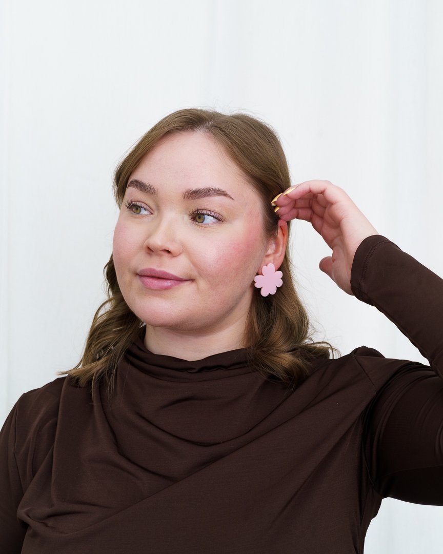 Heisa-korvakorut ovat kauniit nappikorvakorut ja niiden muoto on saanut inspiraationsa kukista. Korujen reunat ovat kauniin pyöristetyt sekä korun pinta kiiltelee upeasti valoa vasten. Korut ovat kevyet ja tuntuvat mukavilta käytössä!