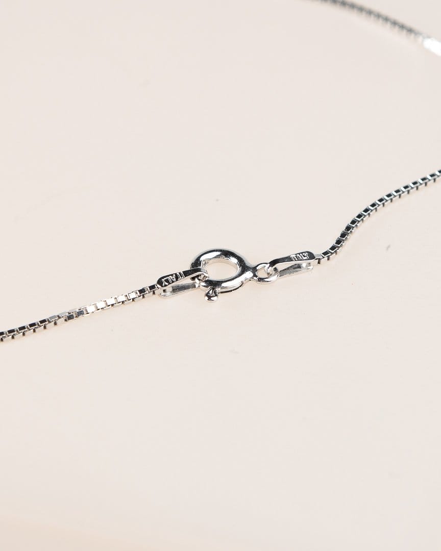 Ketju ja muut metalliosat 925 sterling-hopeaa rhodium-pinnoitteella, valmistusmaa Italia.