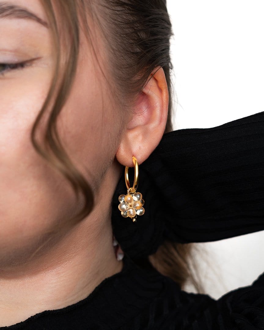 Suloiset ja leikkisät helmikorvakorut rengaskiinnityksellä! Koruissa käytetyt helmet ovat läpikuultavia, tsekkiläisiä lasihelmiä. Korujen metalliosat ovat laadukasta 925 sterling-hopeaa paksulla 18 karaatin kultauksella. Korut toimitetaan kauniissa, vaaleanpunaisessa korurasiassa.