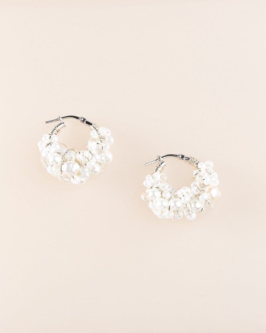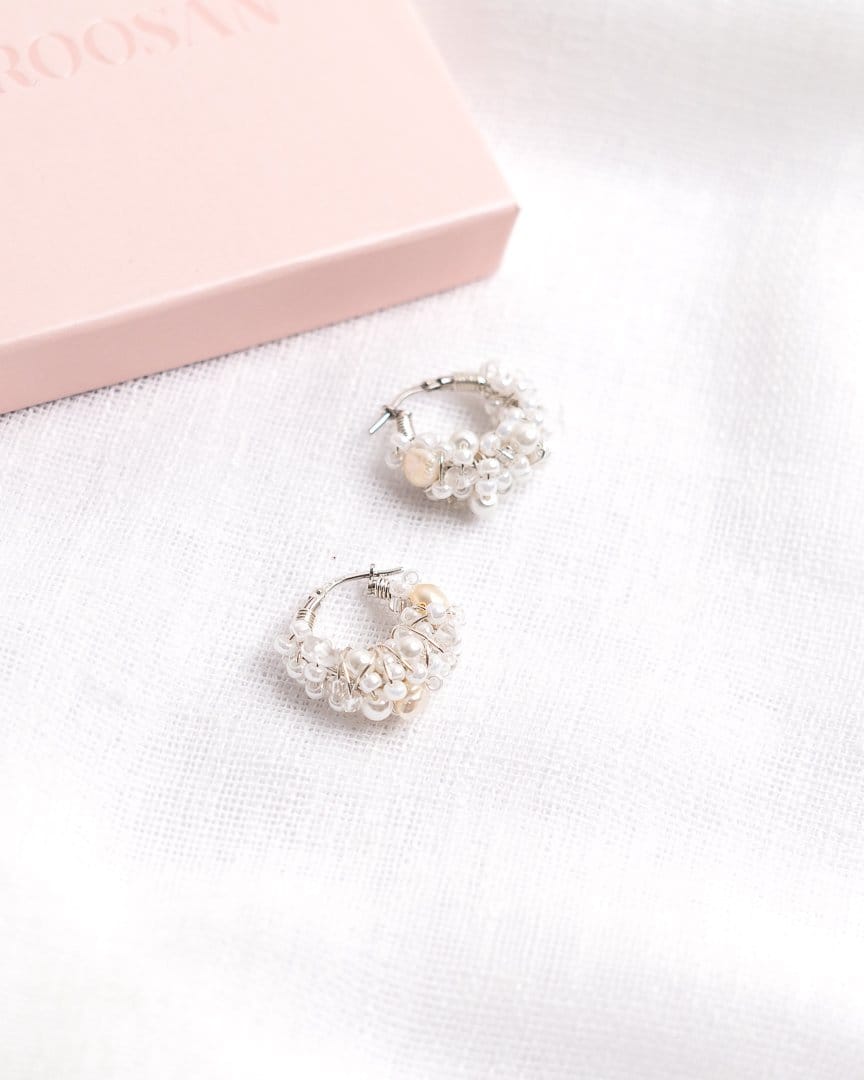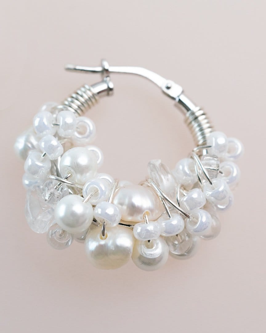 Korvakorut hopeisilla korvakorurenkailla ja makeanvedenhelmillä