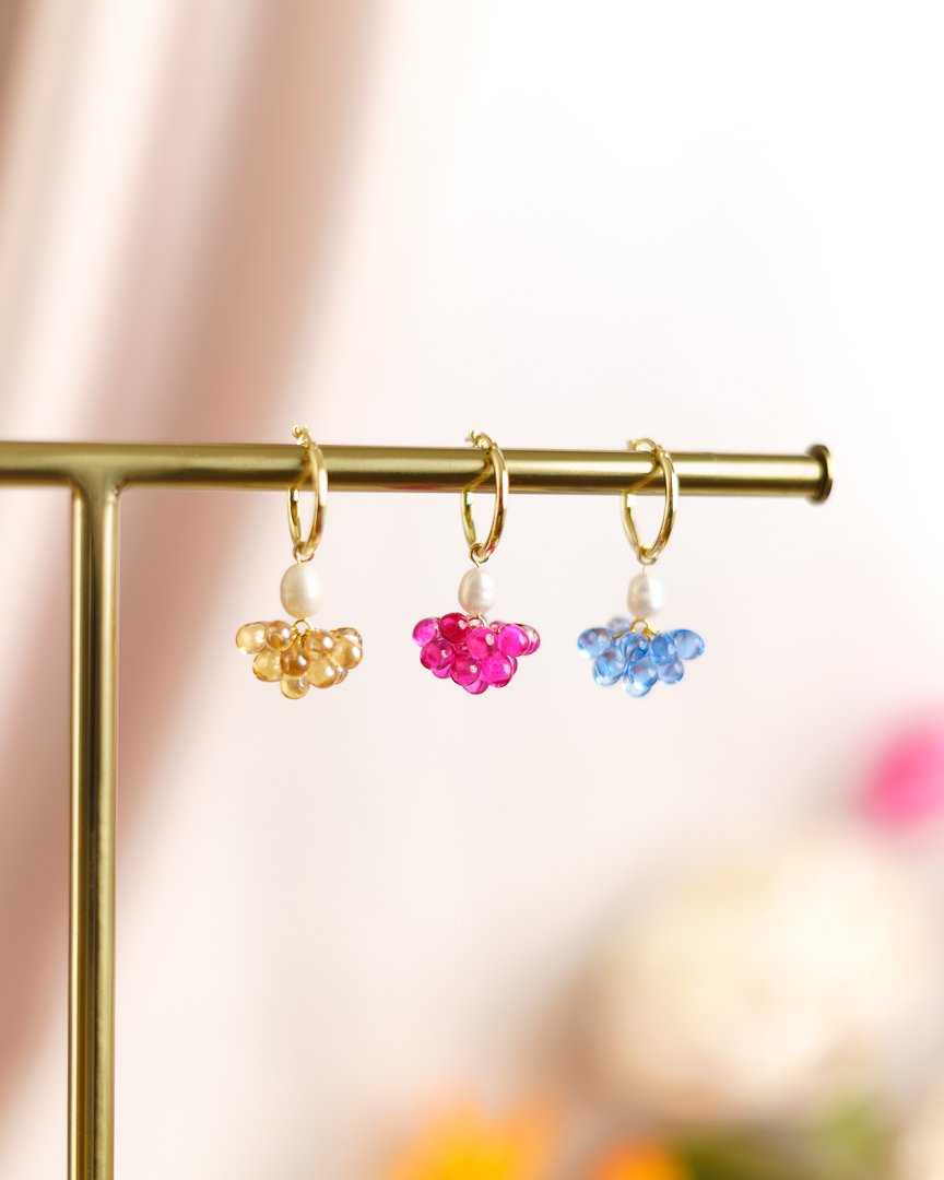 Suloiset ja leikkisät helmikorvakorut rengaskiinnityksellä! Täydellisen herkulliset, värikkäät korut! Koruissa käytetyt helmet ovat läpikuultavia, tsekkiläisiä lasihelmiä sekä aitoja makeanvedenhelmiä. Huomaathan, että makeanvedenhelmien koko, muoto sekä sävy saattaa vaihdella poiketen tuotekuviin. Korujen metalliosat ovat laadukasta 925 sterling-hopeaa paksulla 18 karaatin kultauksella. Korut toimitetaan kauniissa, vaaleanpunaisessa korurasiassa. Korut on valmistettu käsityönä Suomessa.